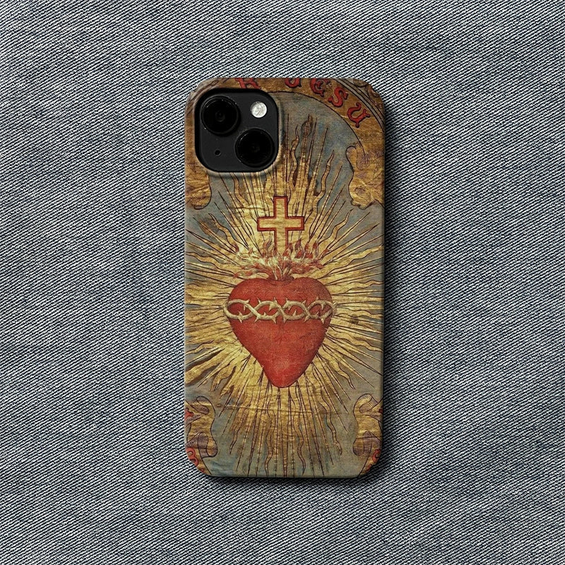 Embrace a vintage-inspired aesthetic with this beautifully detailed phone case. Featuring a heart encircled by intricate patterns and rays of light, this design captures a timeless, classic look with an air of mystique. The carefully crafted details and aged tones make this case a standout accessory, perfect for those who appreciate art with depth and historical charm.