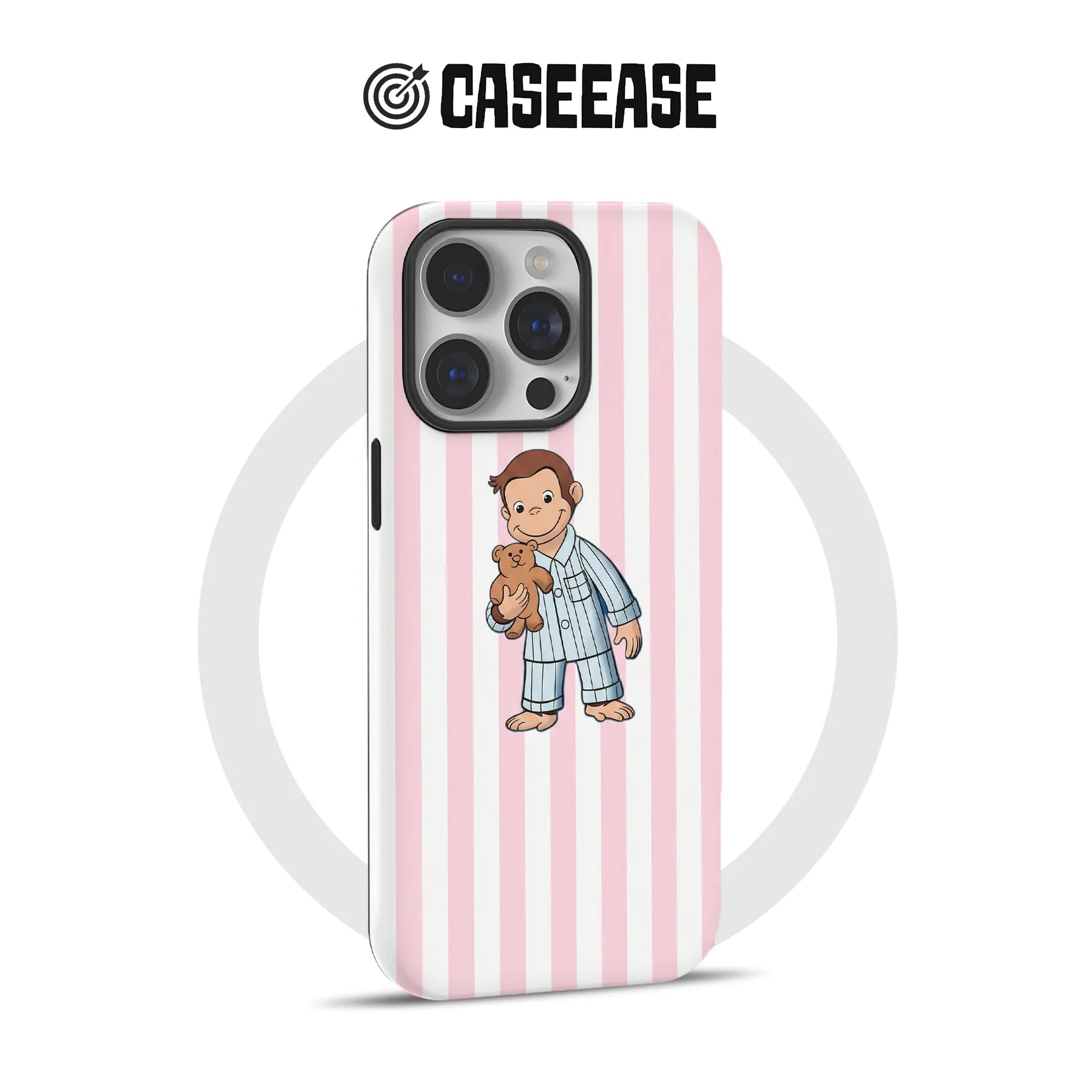 The soft pink stripes create a whimsical backdrop, allowing George and his teddy bear to shine. Crafted from robust yet lightweight materials, this case offers reliable protection for your device while showcasing your fun personality.