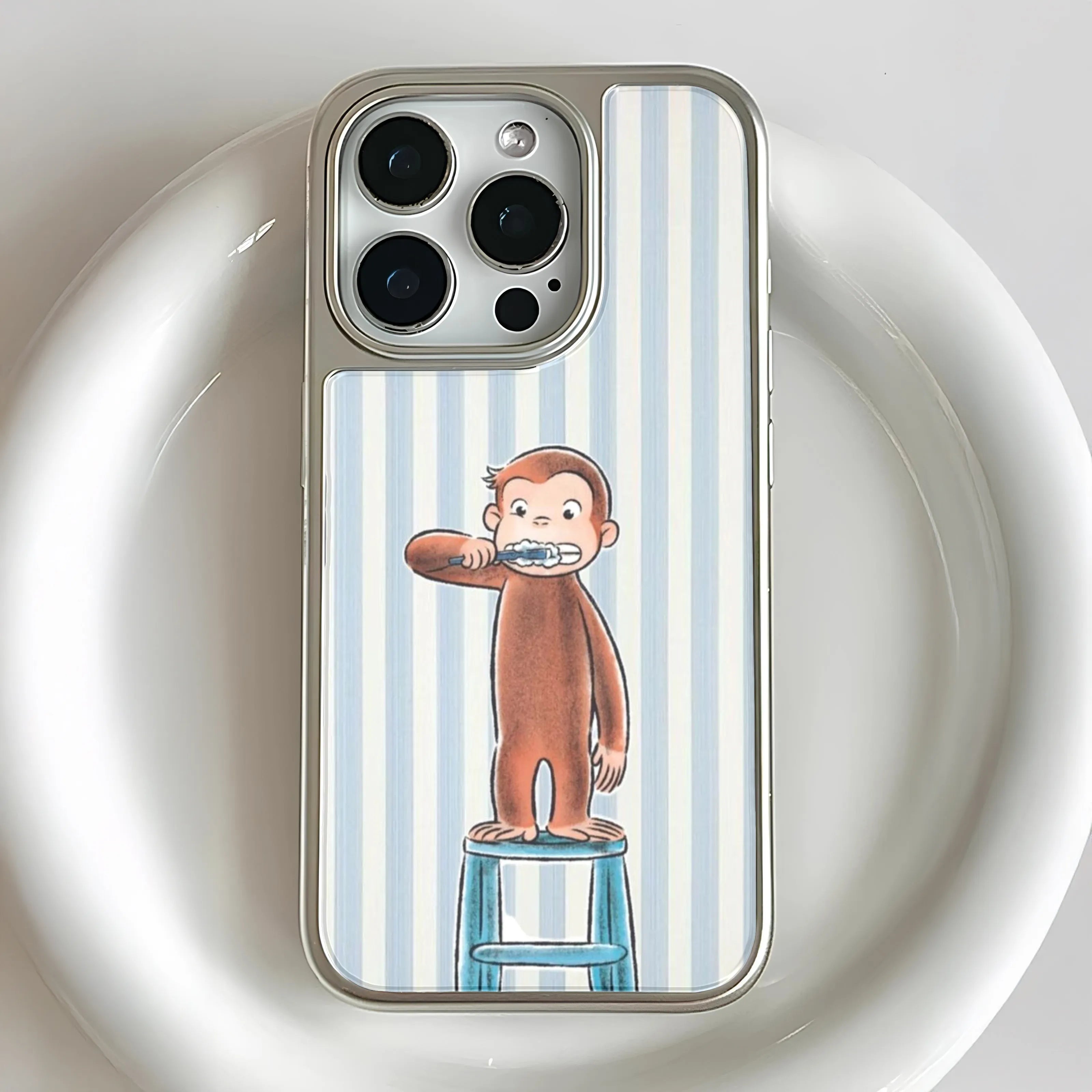 Embrace your playful side with the Curious George Phone Case, featuring a charming design of the beloved character perched on a stool. This playful illustration captures the whimsical essence of childhood and adventure, perfect for fans of all ages.