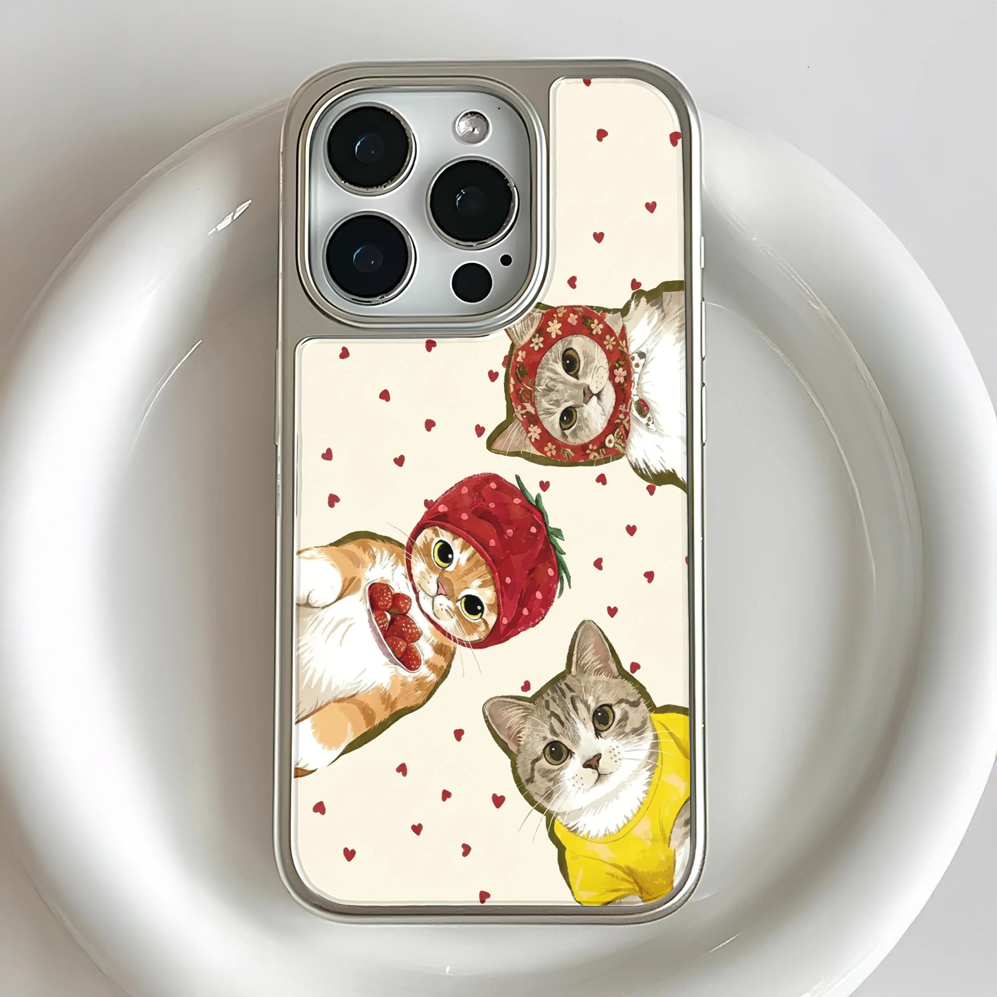 Embrace your love for cats with the Holographic Chrome Cat Phone Case. This charming design features adorable kitties dressed in playful costumes surrounded by hearts, bringing a whimsical touch to your everyday life.
