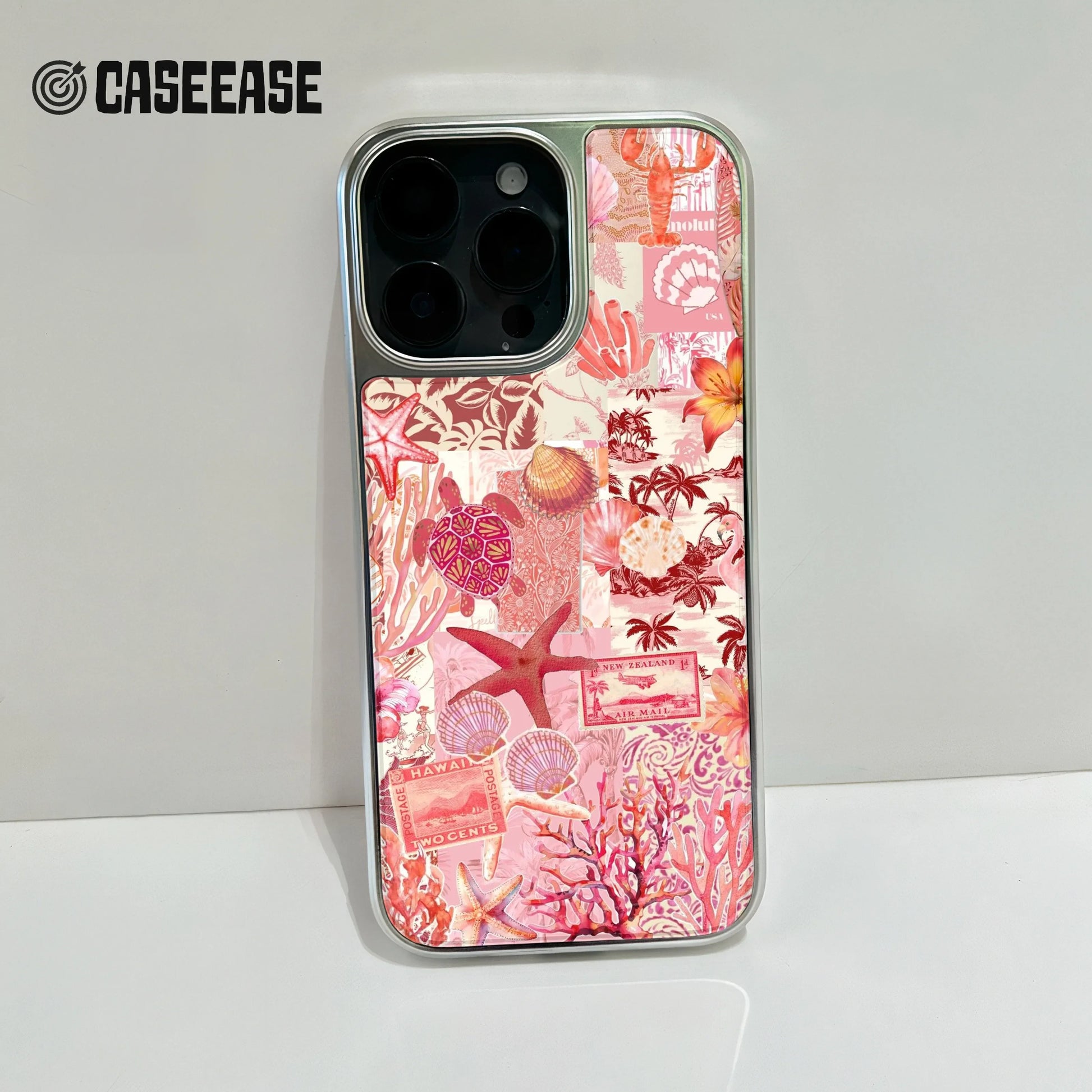Immerse yourself in the enchanting beauty of the ocean with the Holographic Chrome Coral Phone Case. This stunning design features an artistic collage of coral, seashells, and tropical flora, all splashed in vibrant pink and coral hues, bringing a touch of the beach to your everyday life.