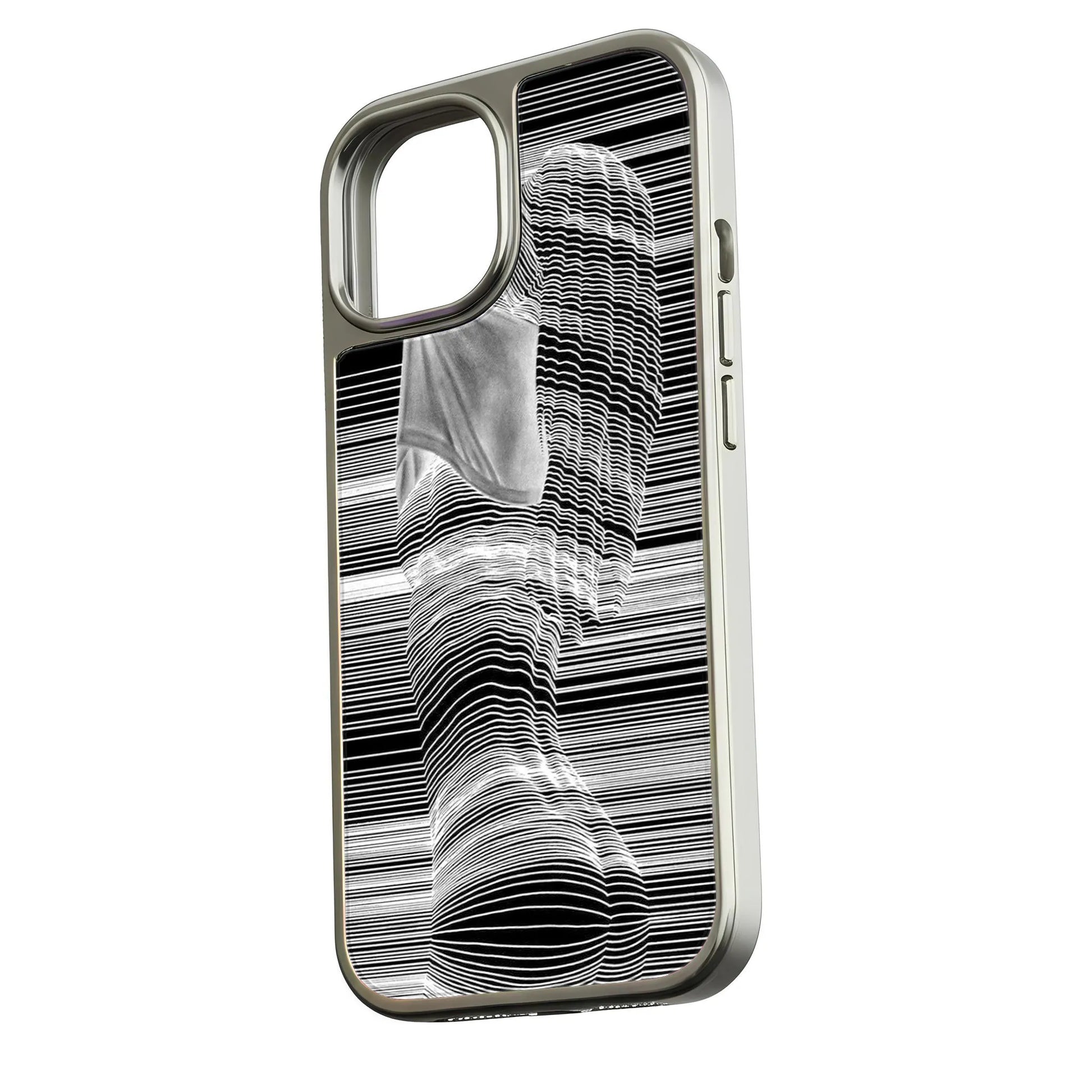 The black and white lines come together to create a mesmerizing visual effect that draws the eye in, showcasing your unique style. Crafted with Electrosilvering Technology, this case offers a durable chrome-like surface that is both lightweight and long-lasting.