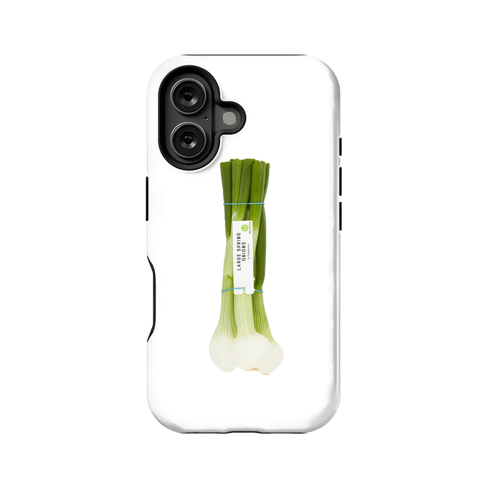 The white background enhances the vibrant green and white tones of the onion, creating a visually appealing and modern aesthetic. Made with durable and lightweight materials, this phone case offers excellent protection while showcasing your unique taste.