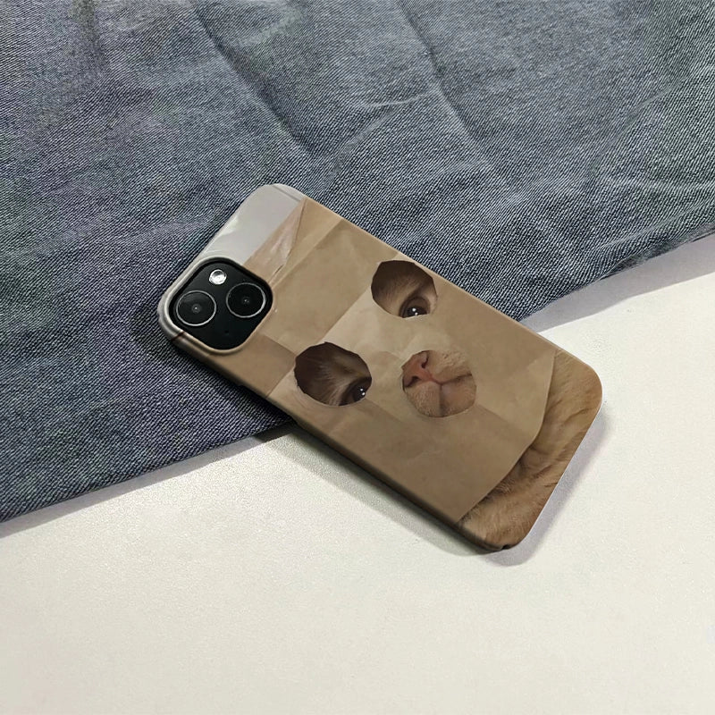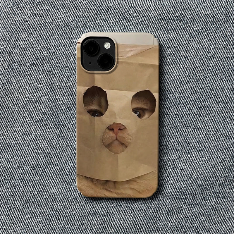 Bring a smile to your day with this quirky phone case featuring a cat peeking through a paper bag with cut-out holes! Perfect for cat lovers and those who enjoy a touch of humor, this design combines adorable feline charm with a playful twist. Made from durable materials, this case not only protects your phone but also showcases your fun and unique style.