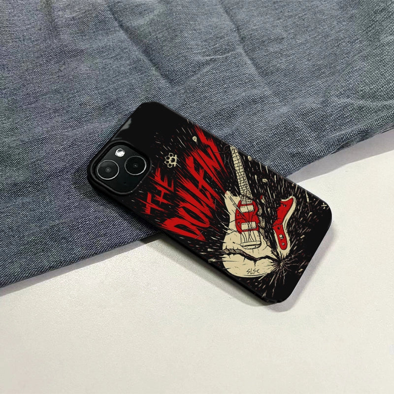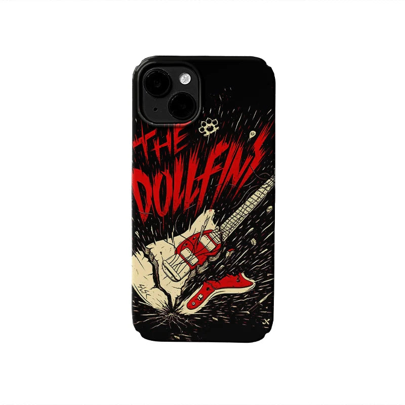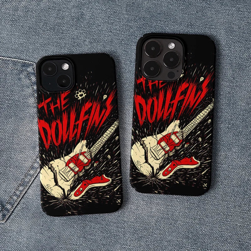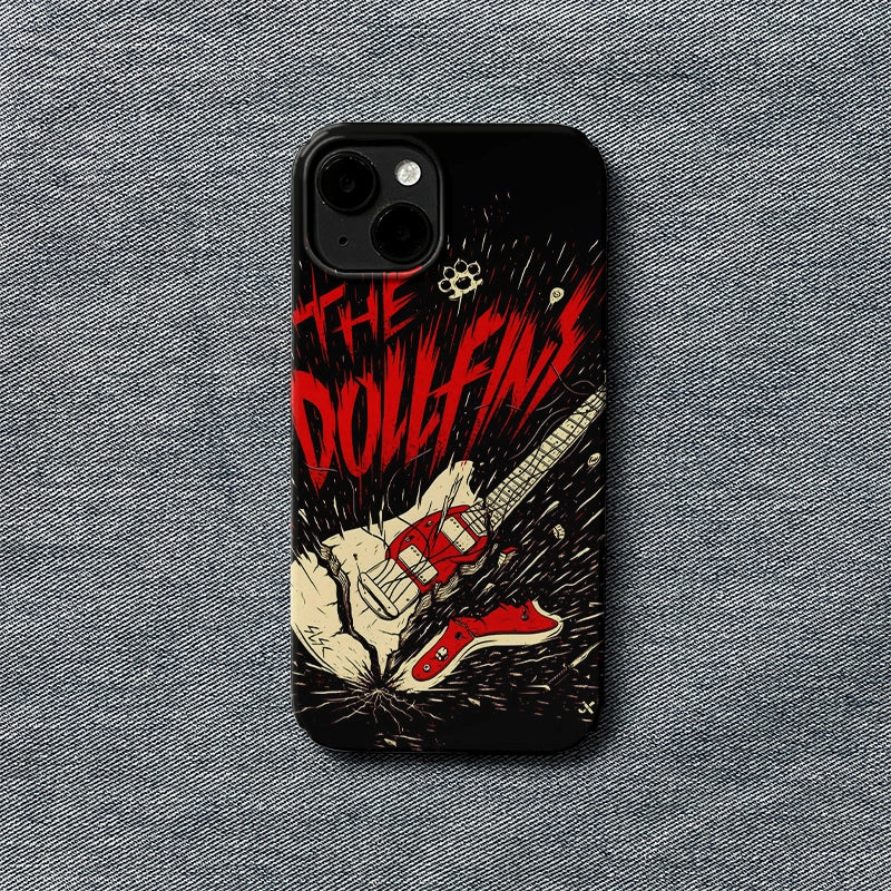 Unleash the power of rock with this edgy phone case featuring a smashed electric guitar and bold red text proclaiming 'THE DOLLFINS.' Perfect for rock music enthusiasts and those who love to showcase their rebellious side, this phone case captures the raw energy and spirit of punk. Let your phone make a statement with this standout design that offers both style and protection.