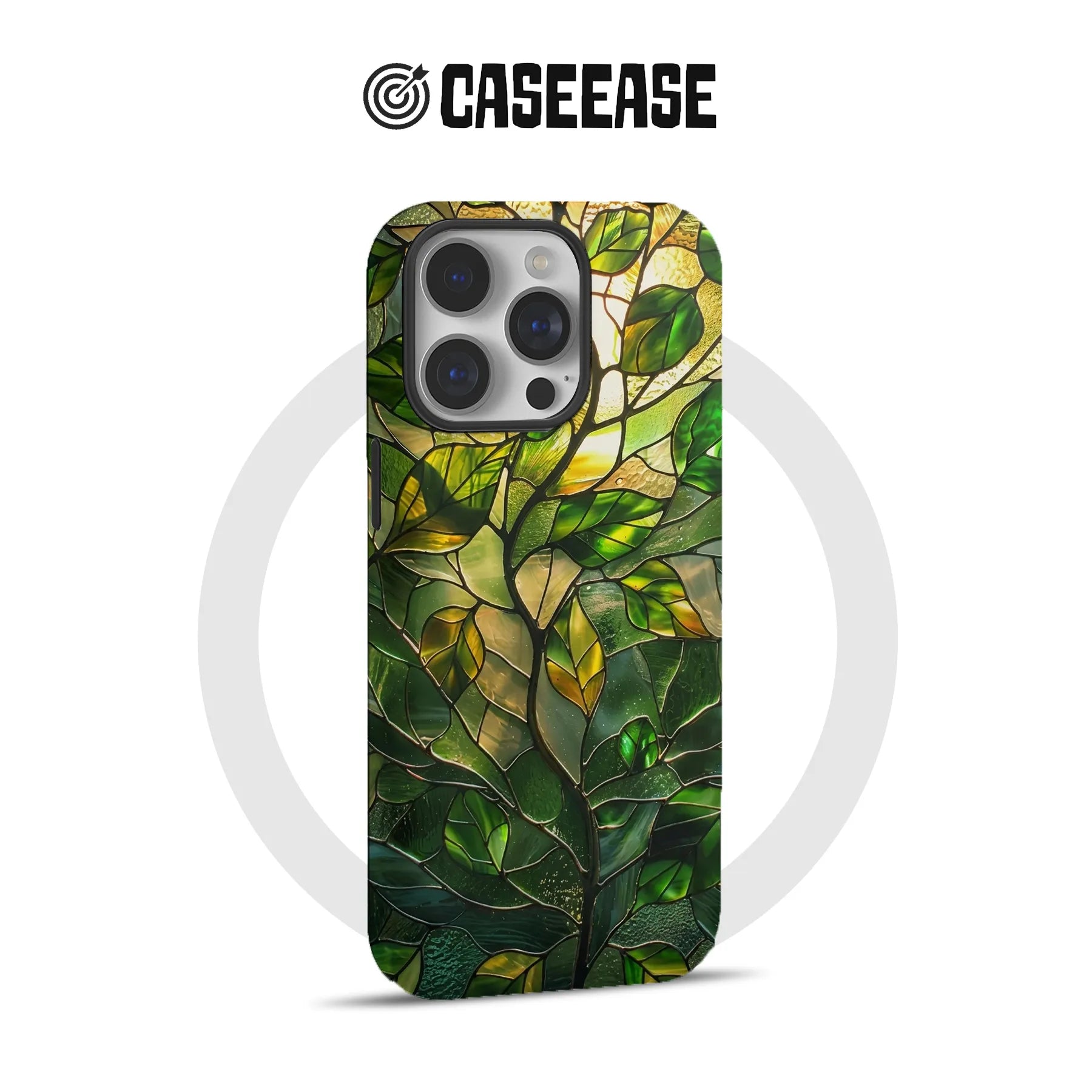 Immerse yourself in nature with the exquisite Stained Glass Leaf Phone Case. This elegant design features a stunning stained glass motif with vibrant green and golden leaves, ideal for those who appreciate artistry and elegance.