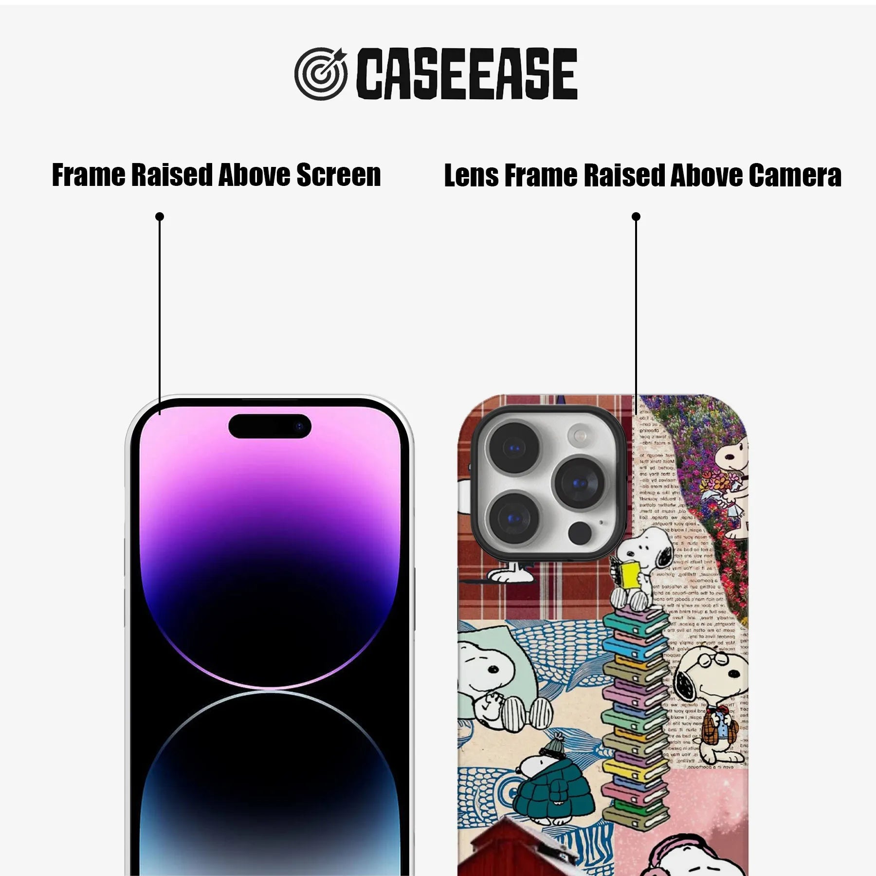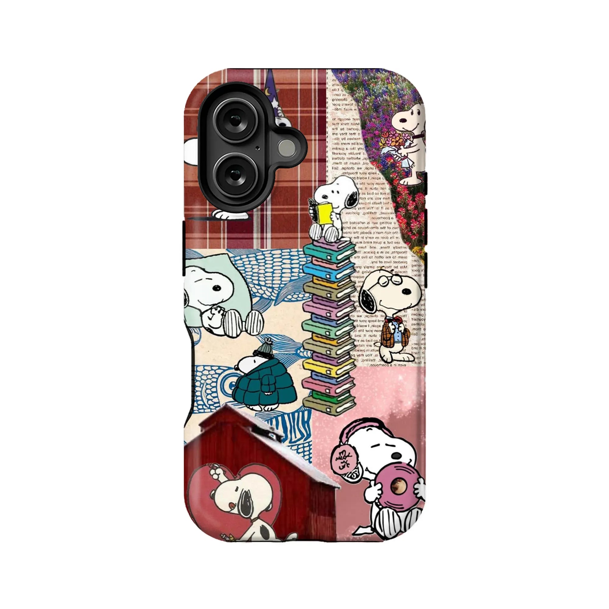 Embrace your playful side with the Vintage Snoopy Collage Phone Case. This whimsical design combines beloved Snoopy characters in a vibrant patchwork of colors, depicting various scenes that embody fun and nostalgia. Every element of the collage tells a story, making it a perfect accessory for fans of the iconic beagle.