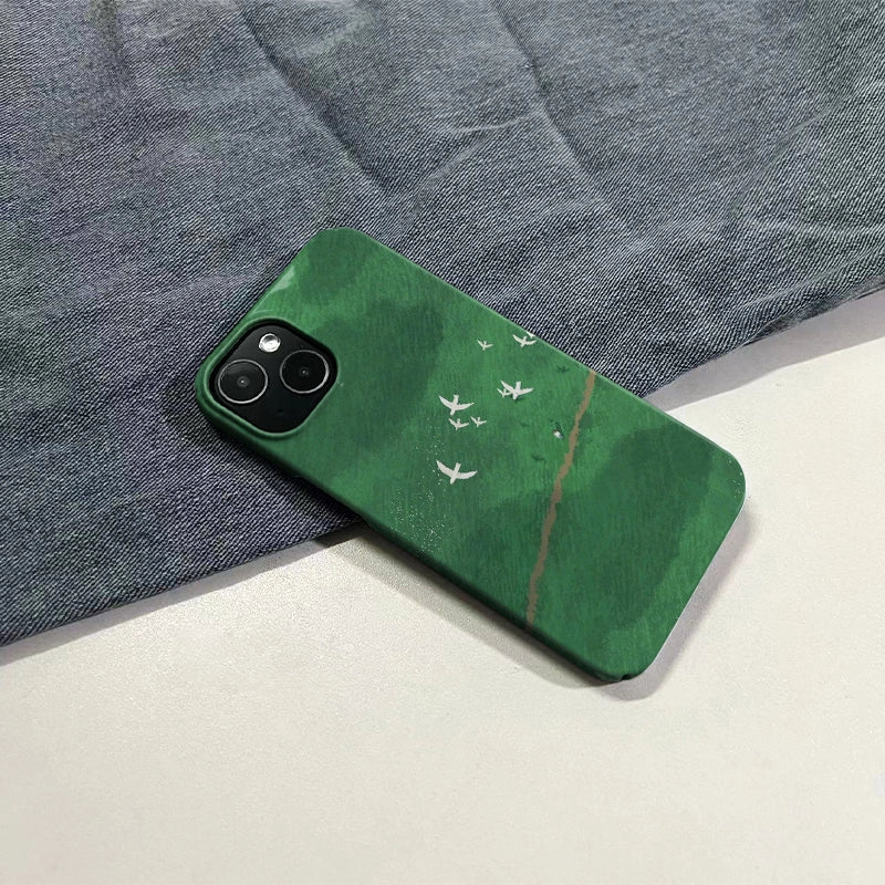 Embrace the beauty of nature with this serene phone case, featuring a tranquil green landscape with graceful birds soaring across the sky. A winding path adds depth, inviting you to explore further into the calm of the wilderness. Perfect for nature lovers and those who appreciate a minimalist aesthetic, this case brings a sense of peace to your everyday life.